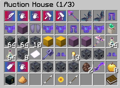 The auction house or **/ah**, is a place to list items for sale and purchase items that others have listed.